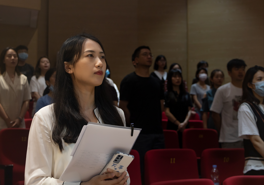 随后,82名新进教师在新教师代表曾德博士领誓下许下铮铮誓言:“我志愿做一名光荣的人民教师,忠诚人民的教育事业,贯彻党的教育方针。坚定政治方向,自觉爱国守法,坚持立德树人,传播优秀文化,潜心教书育人,关心爱护学生,坚持言行雅正,遵守学术规范,秉持公平诚信,坚守廉洁自律,积极奉献社会。争做有理想信念、有道德情操、有扎实学识、有仁爱之心的“四有”好教师,博雅、崇实、弘志、拓新,为实现中华民族的伟大复兴而努力奋斗!”